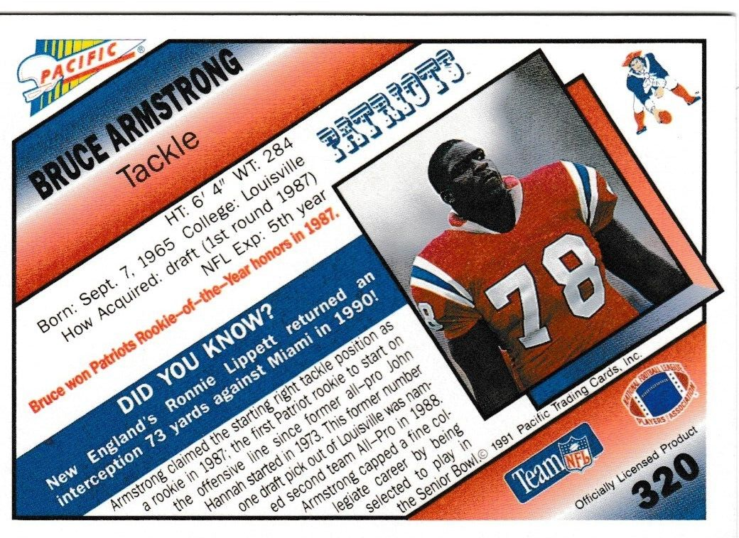 1991 Pacific Football Card Bruce Armstrong New England Patriots #320