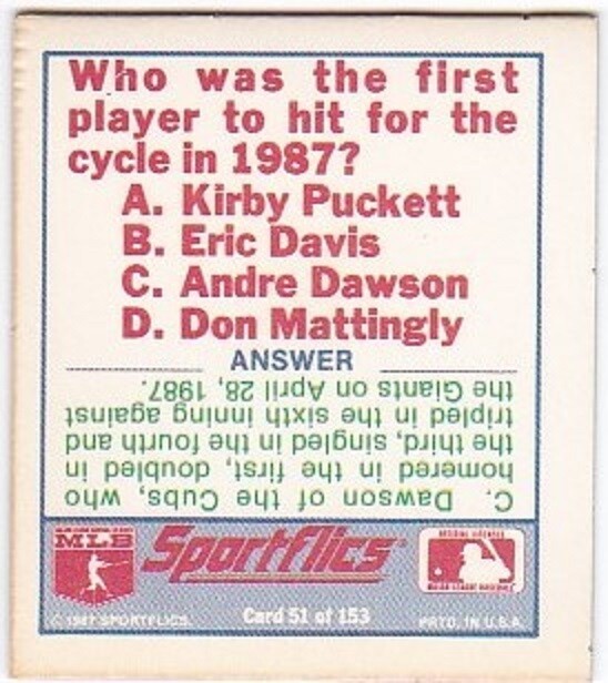 1987 Sportflics #51 Mini Baseball Trivia and 50 similar items