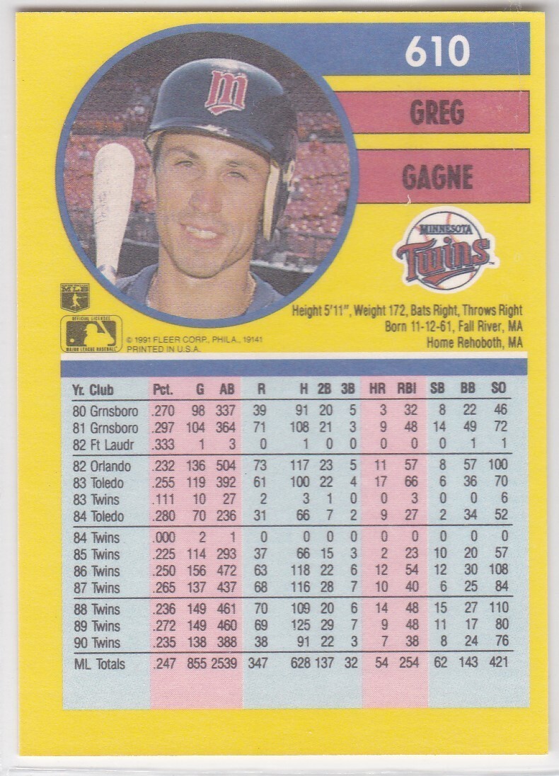 M) 1991 Fleer Baseball Trading Card - Greg Gagne #610