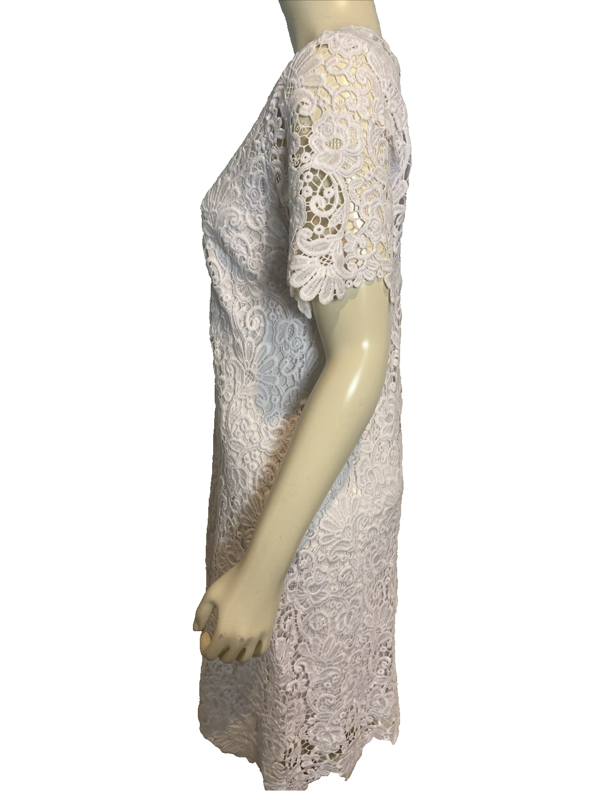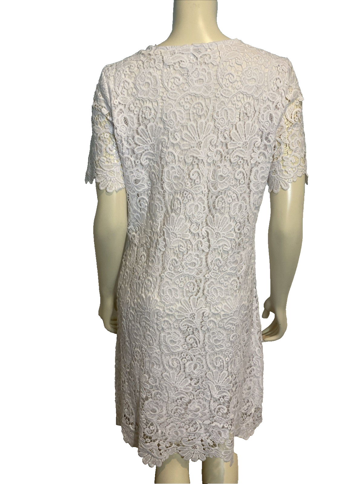 Drapers and Damons White Lace Lined Short Sleeve Dress Size M