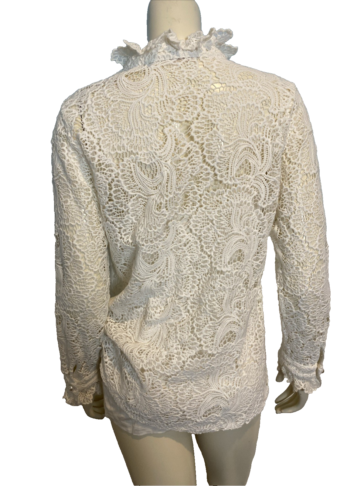 Soft Surroundings Cream Lace Long Sleeve Blouse w Cami Size M