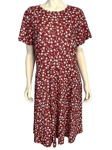 Huhot Women's Knit Dress Red Floral Short Sleeve XXL NEW