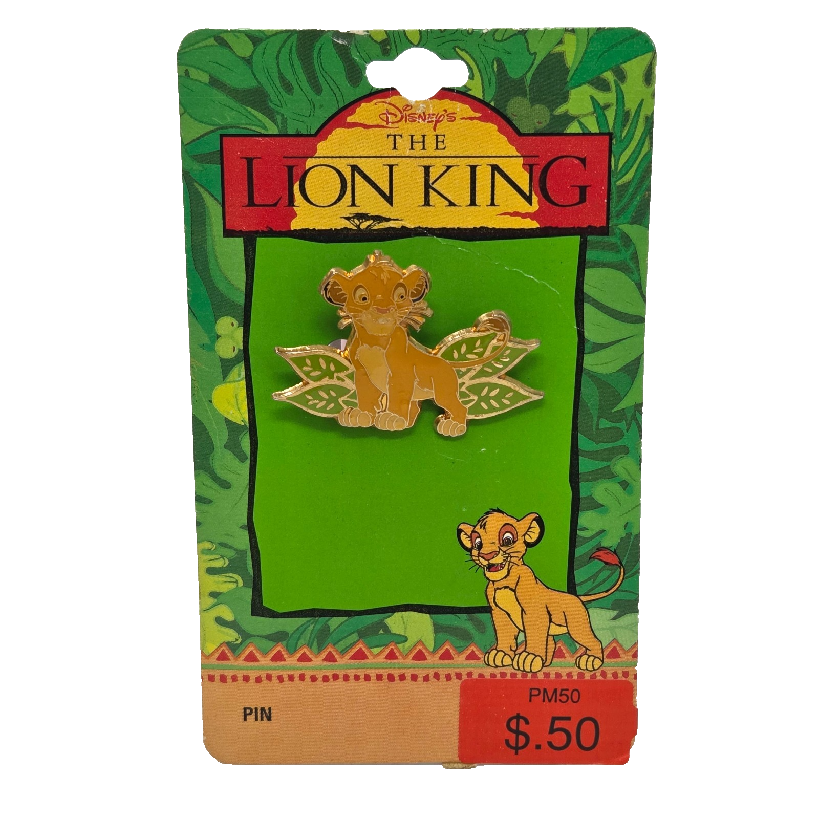 VINTAGE 1990's DISNEY THE LION KING ENAMEL PIN SIMBA IN LEAF NEW ON CARD