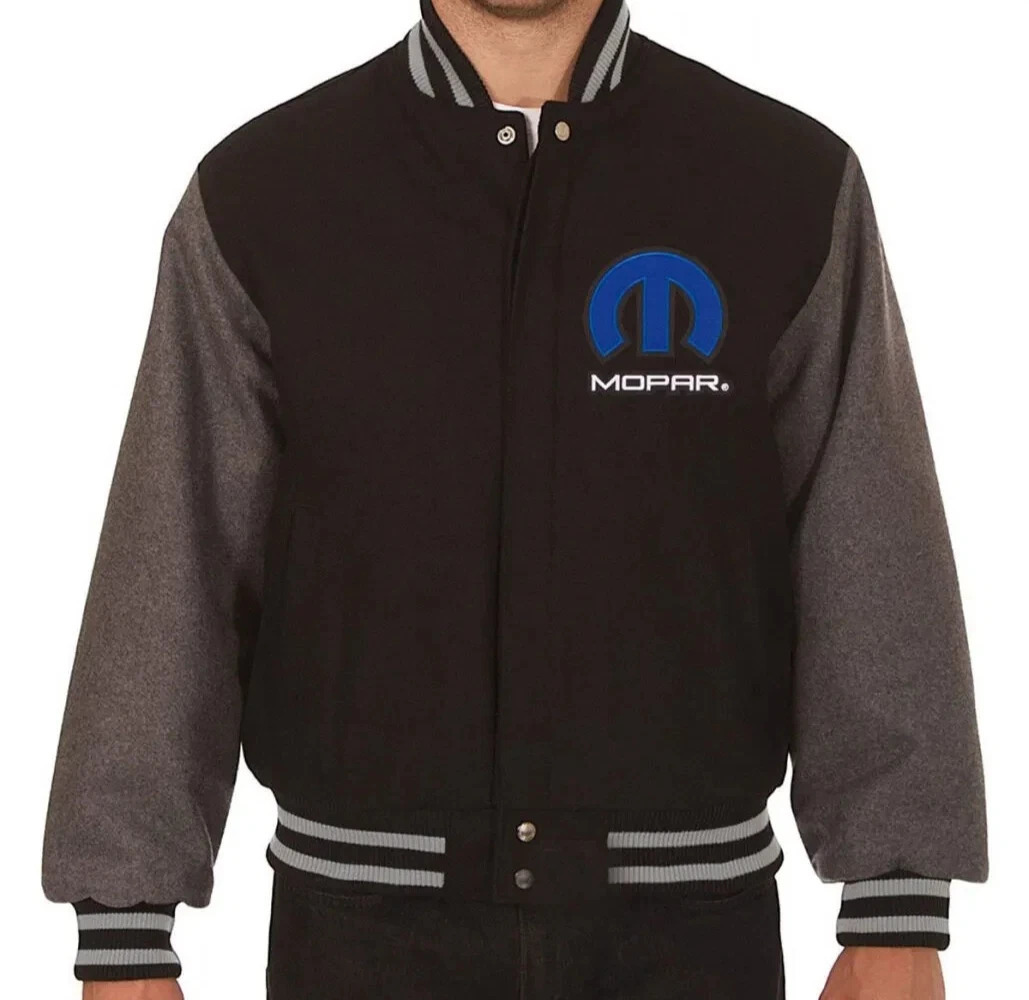 DSHARKS Mopar Black Wool Grey Genuine Leather Sleeves Varsity Jacket