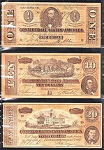 Confederate States of America 1864 Civil War issue Lot of 3 UnCertified notes in