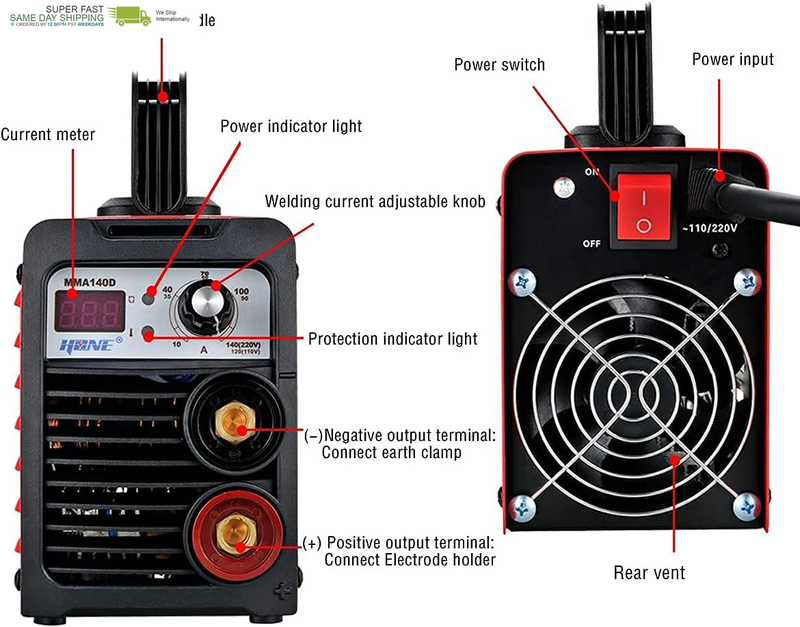 Welding Current (A): 10 ~ 120A (110V) / 10 ~ 140A (220V)