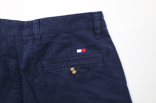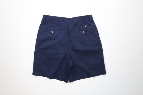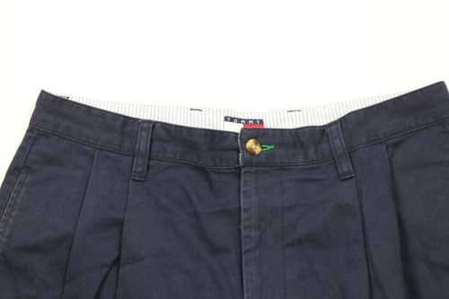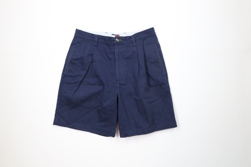 Vintage 90s Tommy Hilfiger Mens 33 Faded Pleated Golf Chino Shorts Blue Cotton
