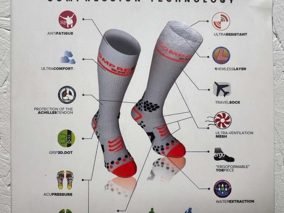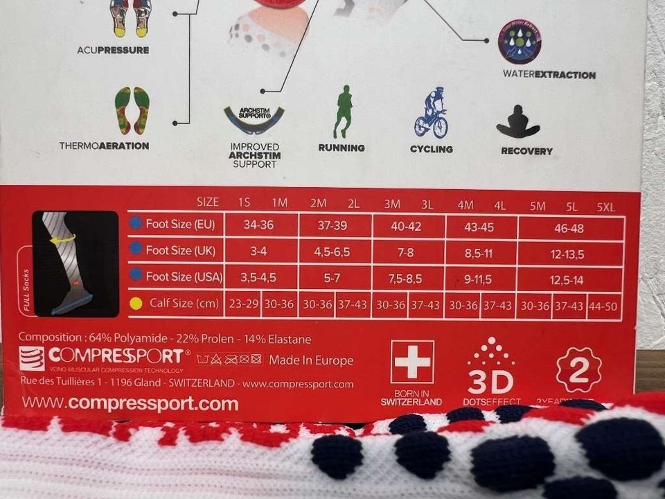 Features Of The COMPRESSPORT Compression Full Socks White V2 3D Dots Size 2M