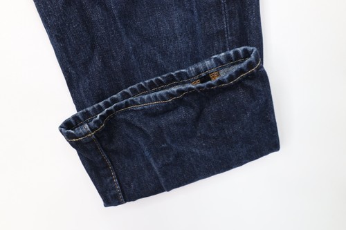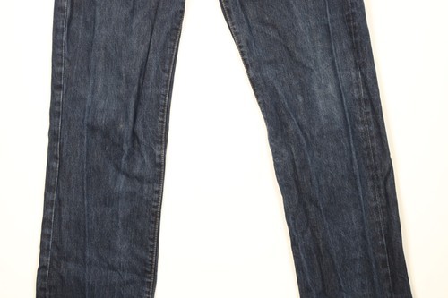 Blemishes both legs.Color bleed inside. Distressed and faded. Has a button fly