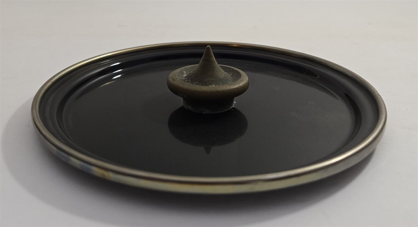 Vintage Black Enamel Brass Knob 5 5/8" Round Pot Pan Replacement Lid #82