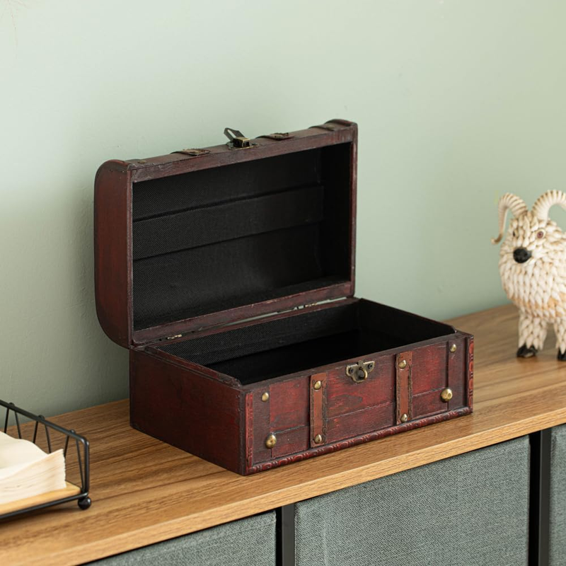 (Tm) Decorative Treasure Box - Wooden Trunk Chest