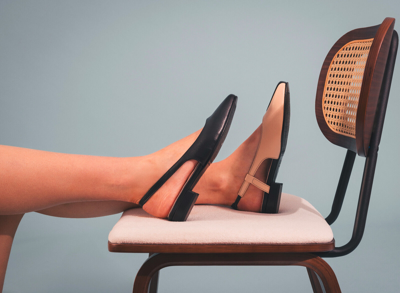 Scarpa vegana donna slingback punta quadrata Apple Leather nera beige alla moda