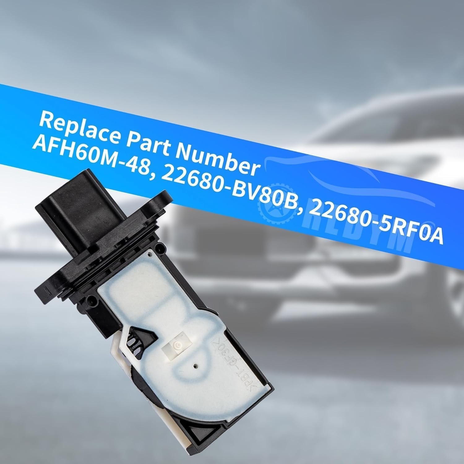 Rldym Mass Air Flow Sensor MAF Sensor 22680-BV80B for 2.5L Nissan Altima Juke Versa 1.6L Maxima Pathfinder 3.5L Rogue Rogue Sport 2.0L 2.5L Sentra 1.6L 1.8L 2015-2017, Replace# AFH60M48