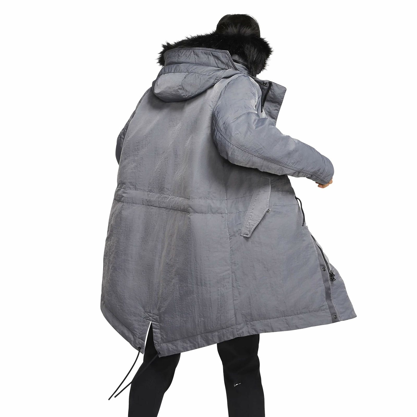 A 2-way zipper and detachable faux-fur lining around the hood provide custom comfort.