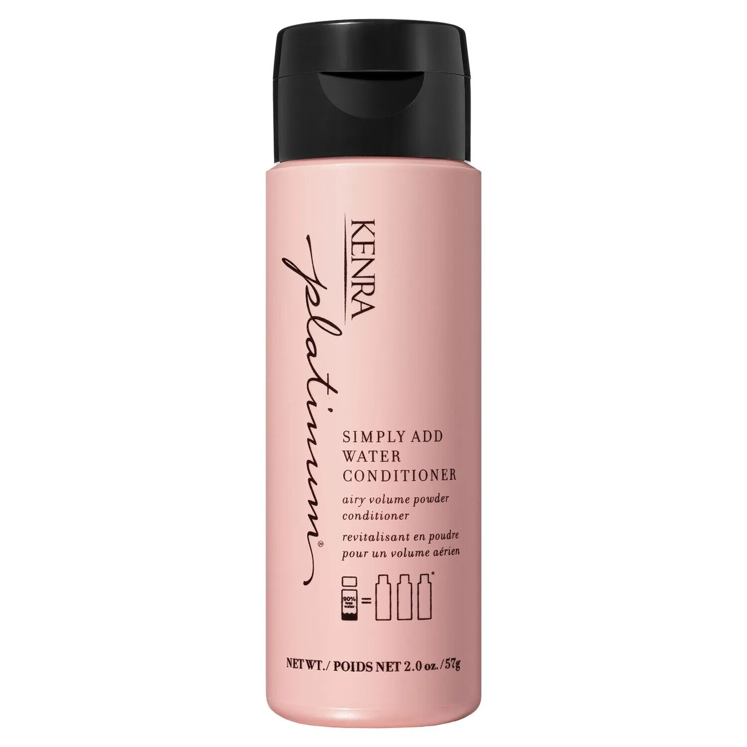 Kenra Platinum Simply Add Water Conditioner Airy Volume Powder 3x more product - based on quarter-sized amount compared to usage of 8.5 oz. Kenra Platinum shampoo/conditioner. Travel ready. Manufactured with 98% recycled plastic. Silky slip for enhanced shine with no residue. Rice Protein adds airy volume