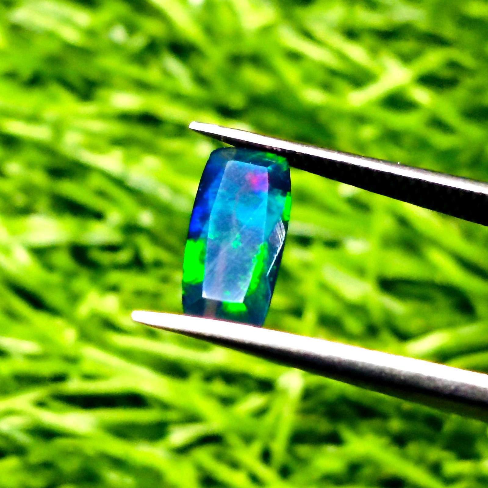 Natural Ethiopian Black Opal Faceted Emerald shape Gemstone Multi Fire Welo Opal