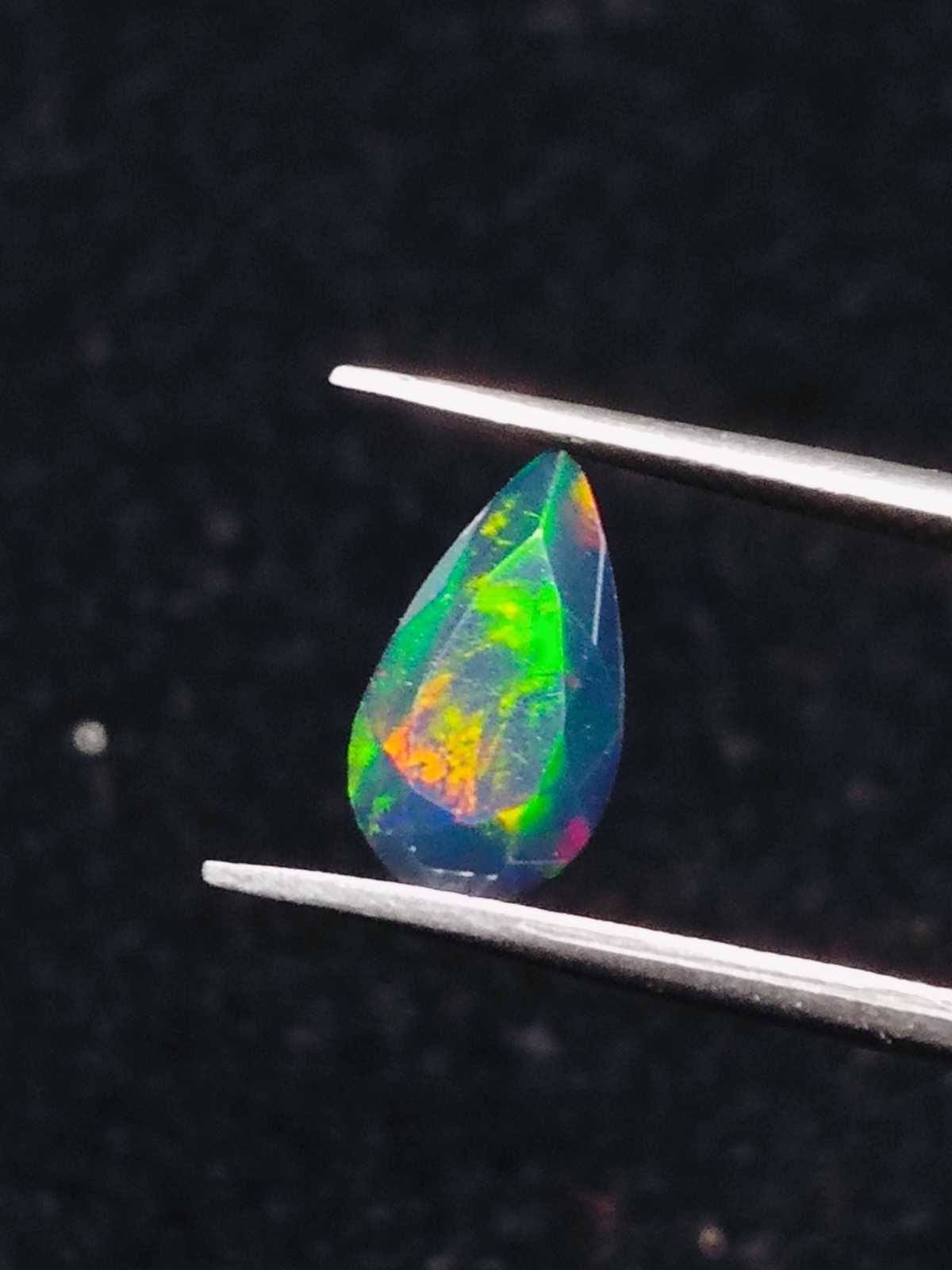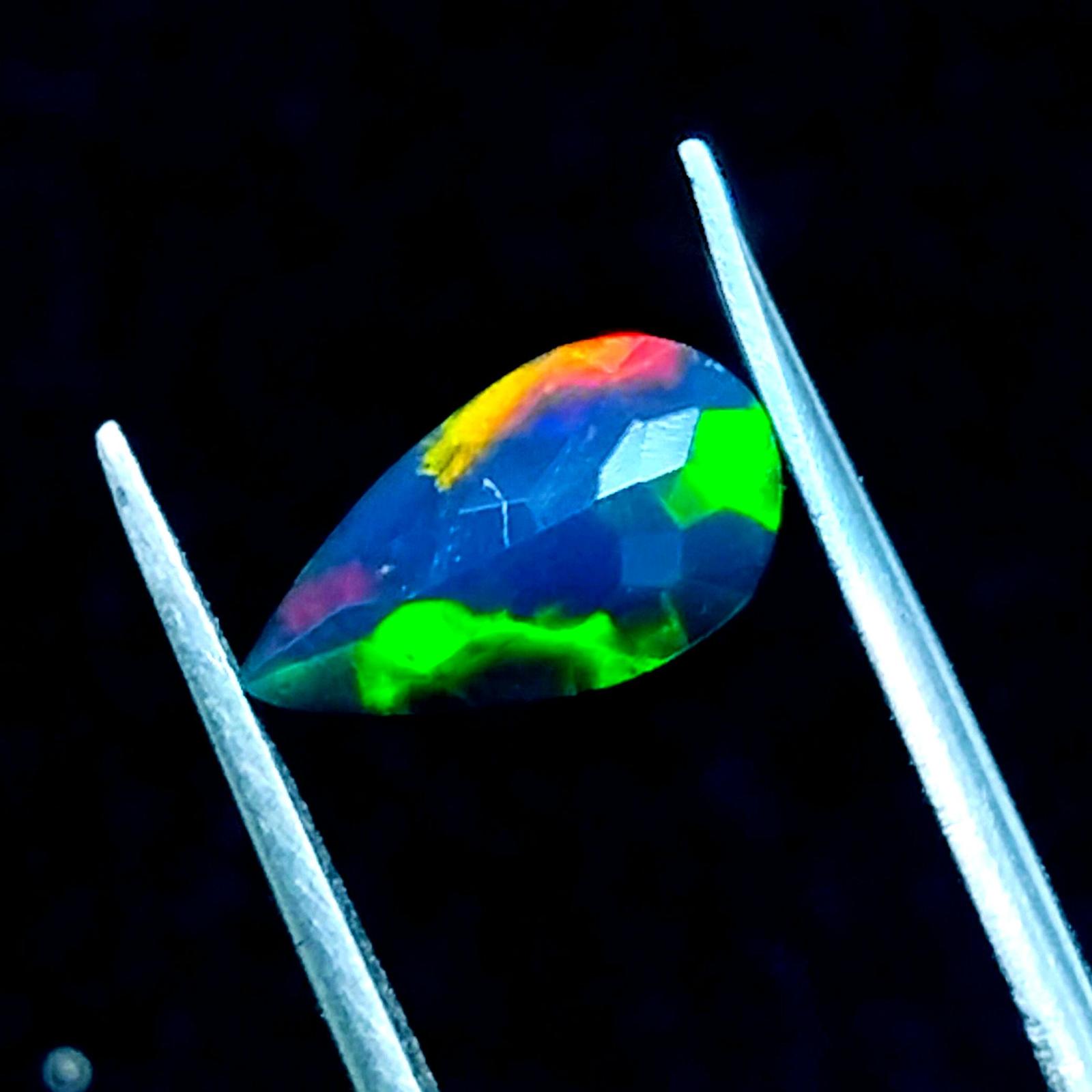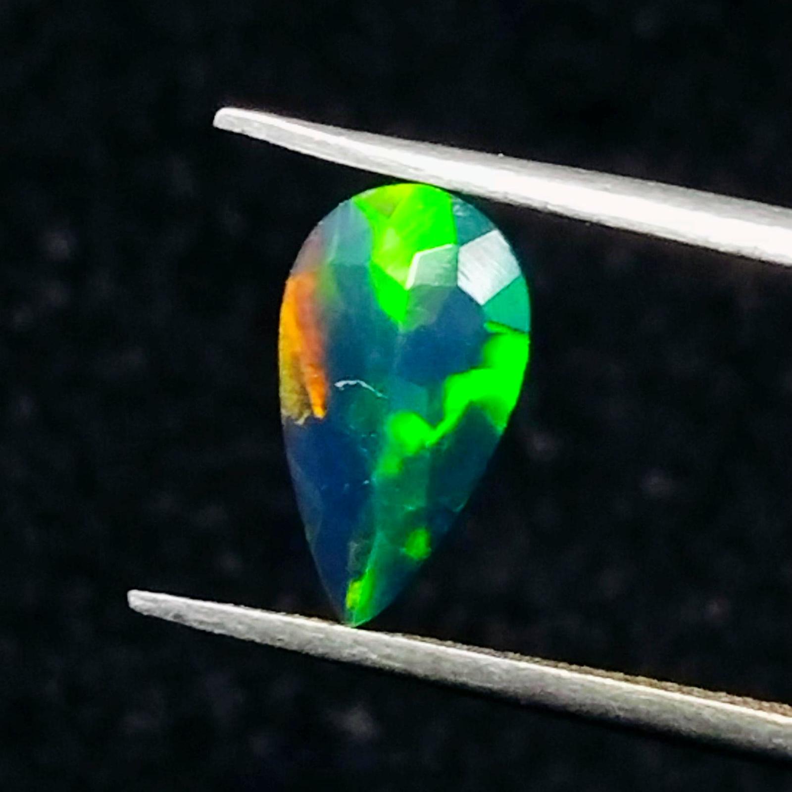 Natural Ethiopian Black Opal Faceted Pear shape Gemstone Multi Fire Welo Opal St