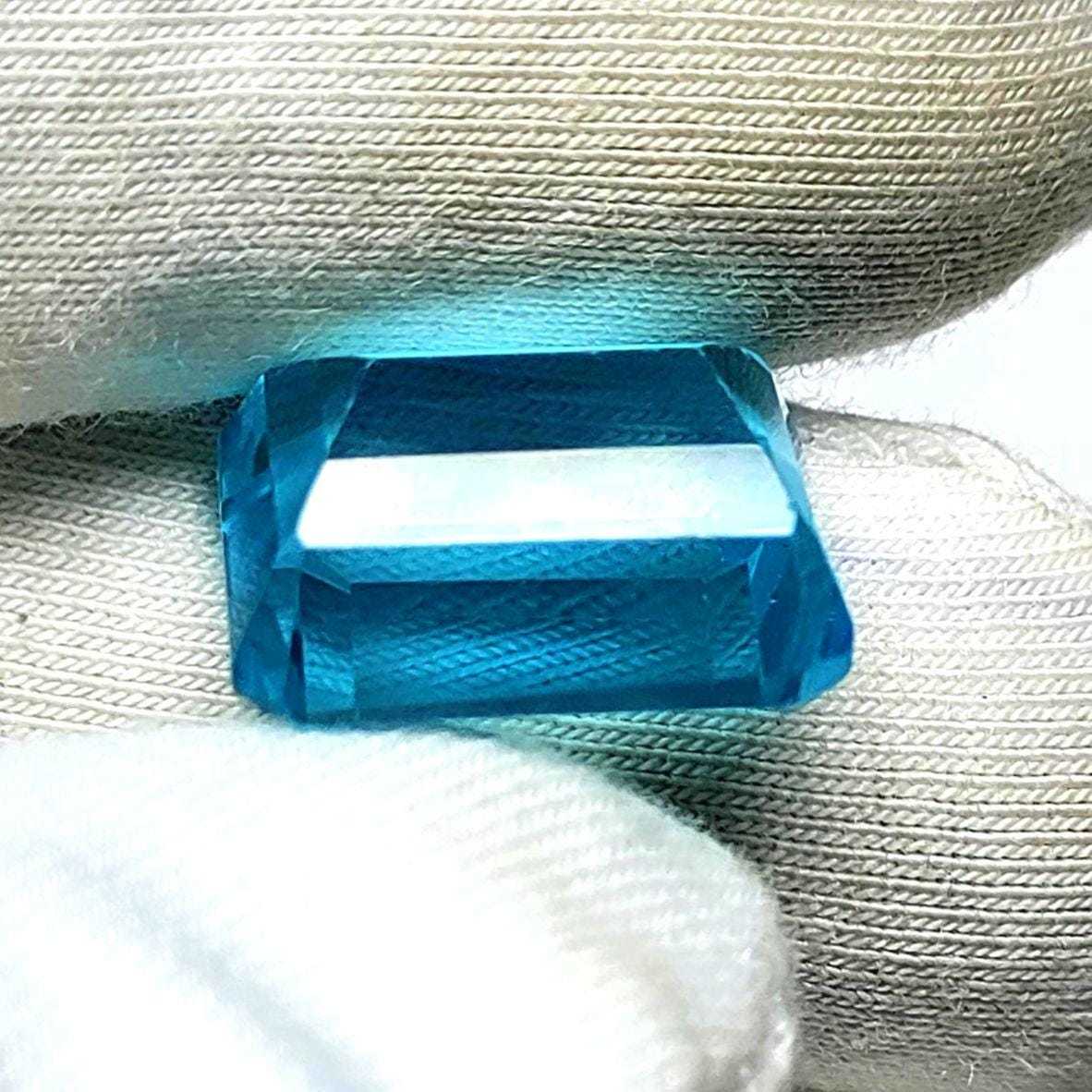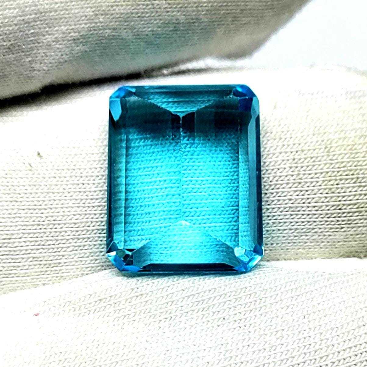 12.20 CT Swiss Blue Topaz Gemstone , Loupe Clean Natural Topaz , Emerald Cut Top