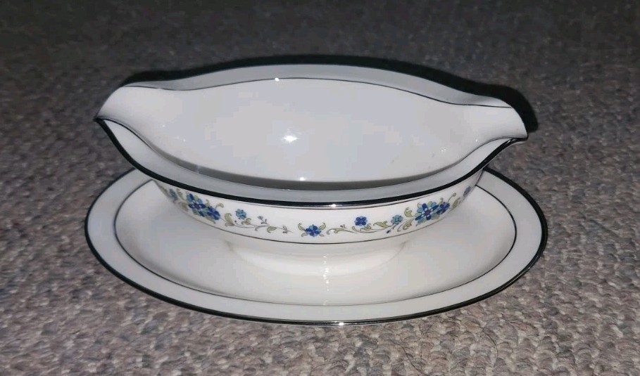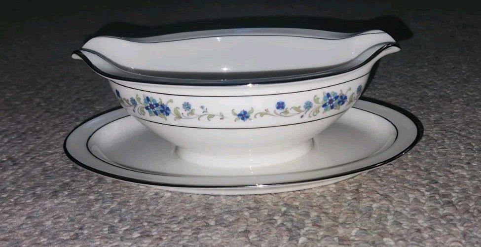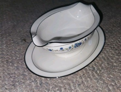 Noritake Norma Ivory China Gravy Boat Bowl Floral Attached Plate