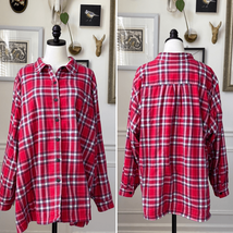 L.L. Bean Women's Fleece-Lined Flannel Shirt Button Up Red Blue Plaid $90 3X