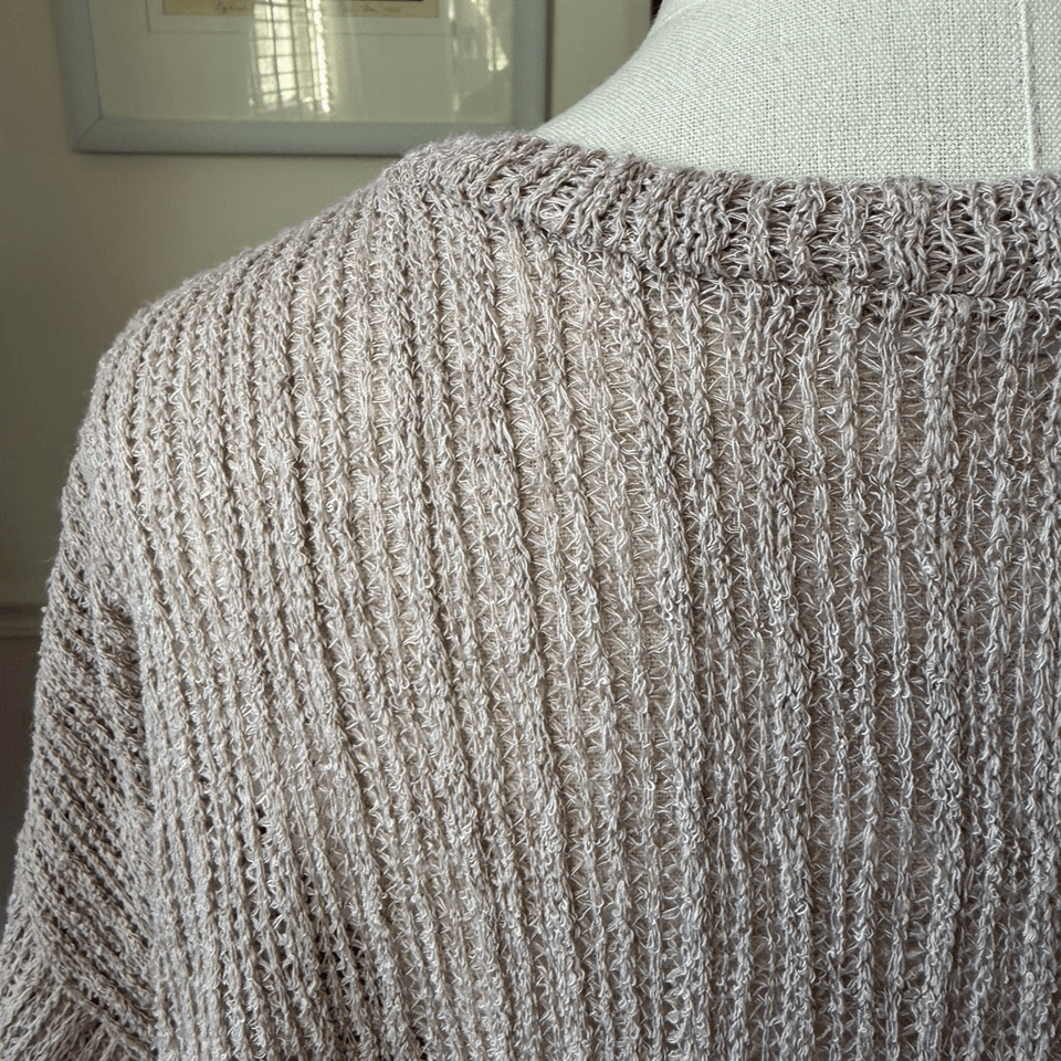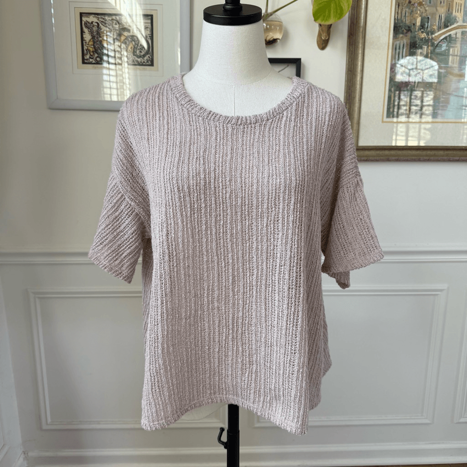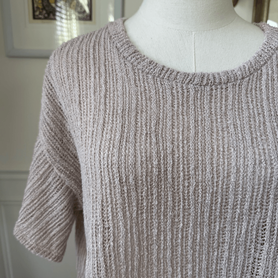 Cherish Open Weave Top in taupe. Scoop neck dolman top
