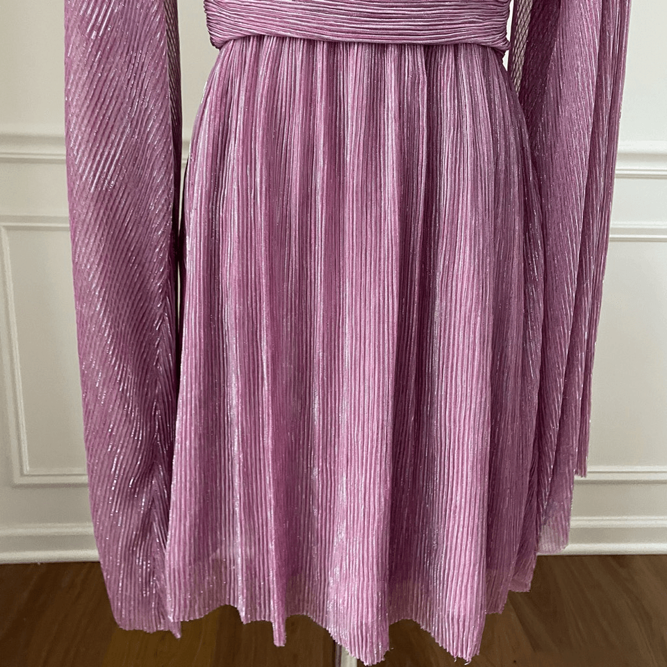 Amy Enjoy Life Mauve Pink Metallic Stripe Bell Sleeve Mini Dress XS
