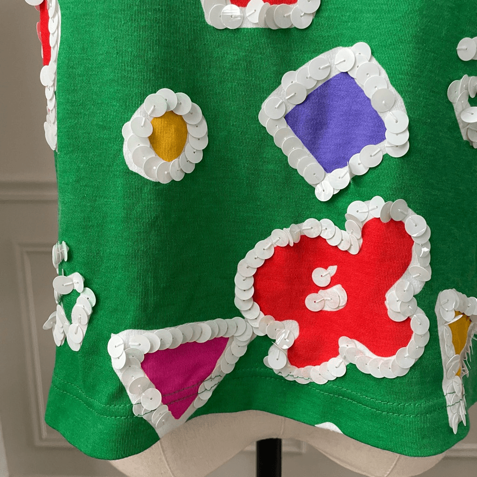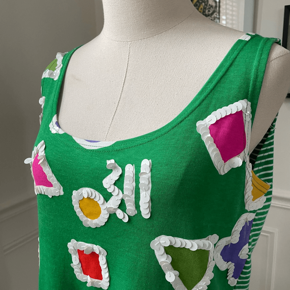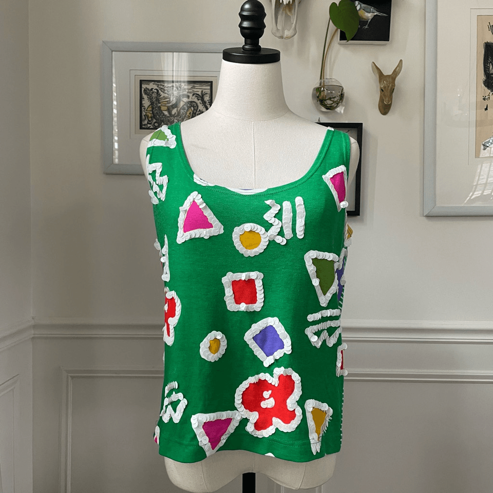 Vintage 80s Be Green Geometric Shape Pailettes Tank Top M L