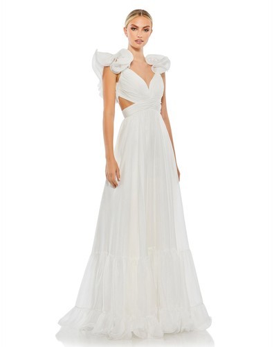 Mac Duggal 67911 Rosette Chiffon Cutout Empire Waist Gown Sz 6 White $598