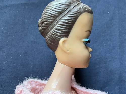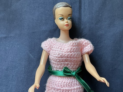 This is a vintage 1960s Barbie doll. She is in good used vintage condition and is marked on her behind and feet. I believe she is a 1962 but I will not verify date or type of Barbie but she is pretty and in good shape. No major issues with her and great for adding to a collection. She does not have the wigs that came with the doll. The dress is handmade crochet pattern and in good condition.