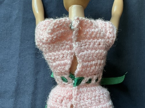Vintage 1960s Barbie In Handmade Pink Crochet Dress No Wigs Japan Foot