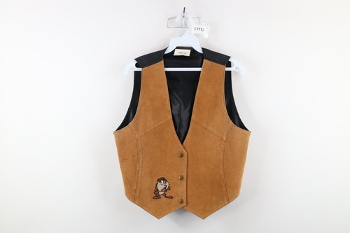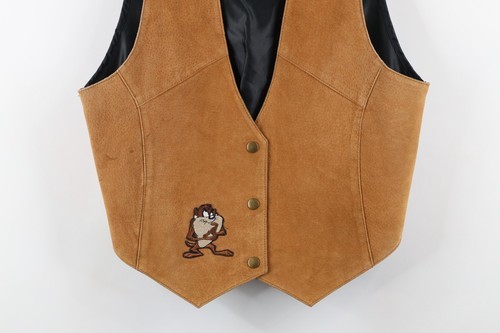 Vintage 90s Looney Tunes Womens M / L Tazmanian Devil Suede Leather Vest Jacket