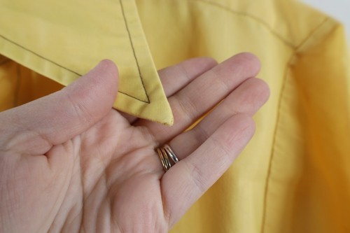 Distressing on collar tips. Blemish front bottom. USA made