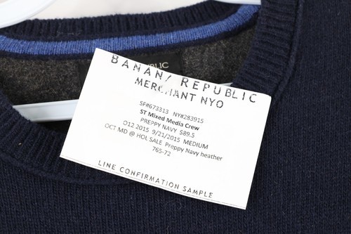 New Banana Republic Mens Medium Wool Blend Knit Preppy Sweater Navy Blue Sample