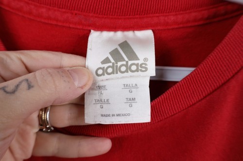 Vintage Y2K 2003 Adidas Mens Large Faded Spell Out Short Sleeve T-Shirt Red