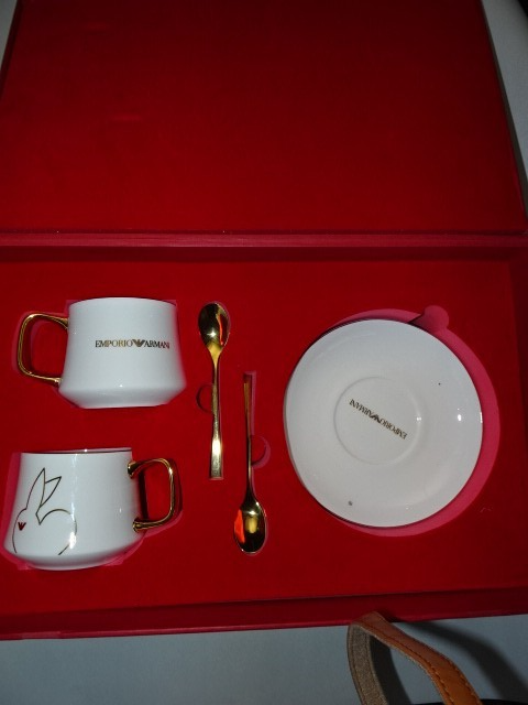 Emporio Armani Espresso Cup & Saucer Gift Set – 2 Cups 2 Plates 2 Spoons – Bunny