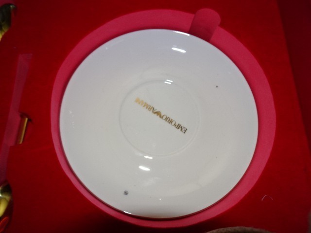 2 Matching saucers with gold Emporio Armani branding
