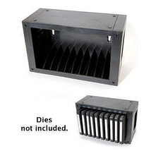 The perfect storage solutions for up to ten of your Bigz dies, Mover Shapers dies, or Scoreboards dies! Built-in handles make transporting it easy or mount it on the wall for out-of-the-way organization. This package contains one 11-3/8x7x4-7/8 inch Storage Rack. All dies and mounting hardware sold separately. Imported.