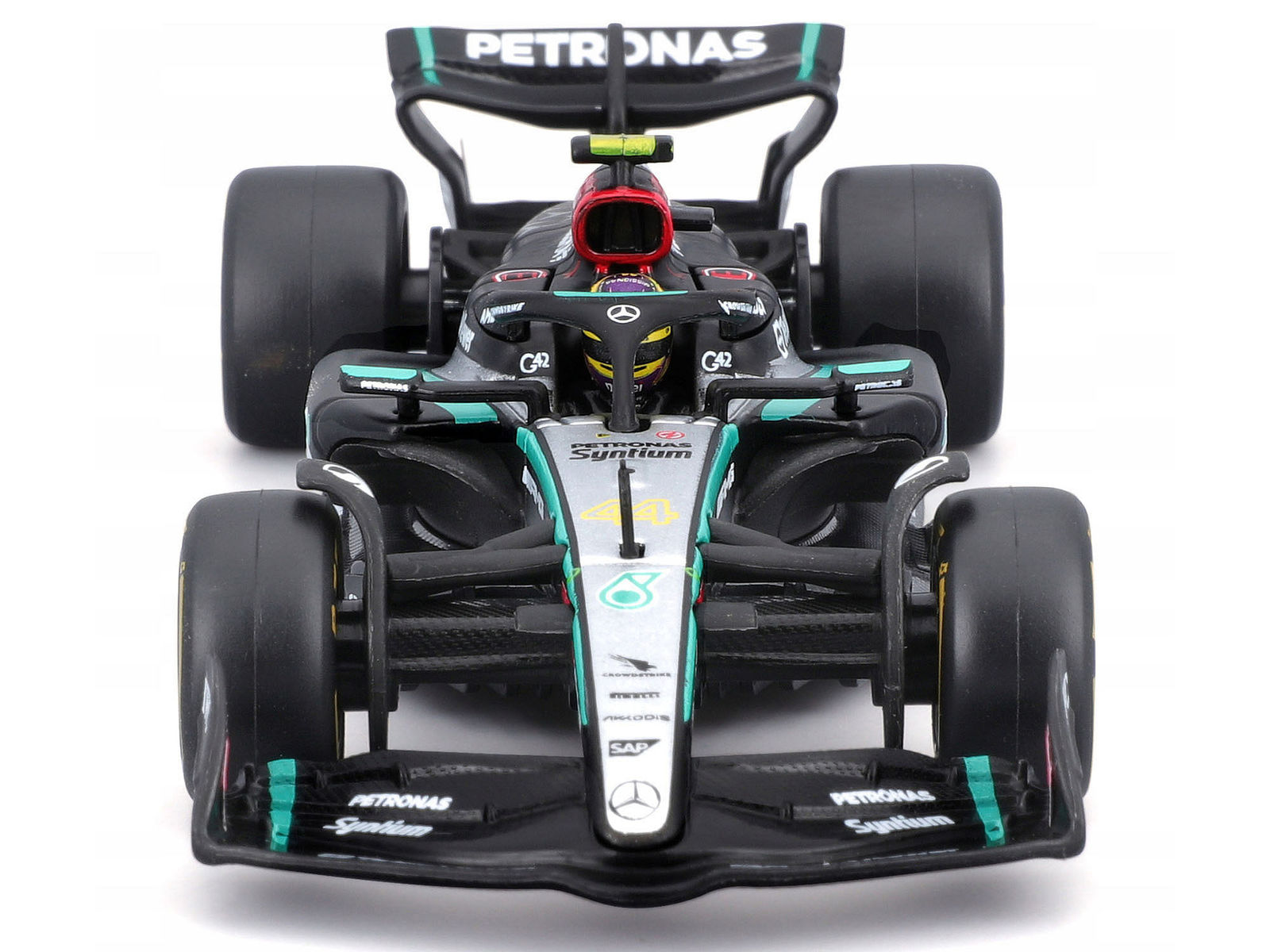 Imagine yourself at the pinnacle of motorsports, surrounded by roaring engines and the thunderous applause of a captivated crowd. Now, picture that thrilling experience condensed into an exquisitely detailed model, capturing every nuance of Lewis Hamilton's legendary Mercedes-AMG F1 W15 E Performance #44 as it races towards victory in the 2024 Formula One World Championship. This isn't just a toy; it's a tangible piece of motorsport history, meticulously crafted to transport you into the heart of the action.