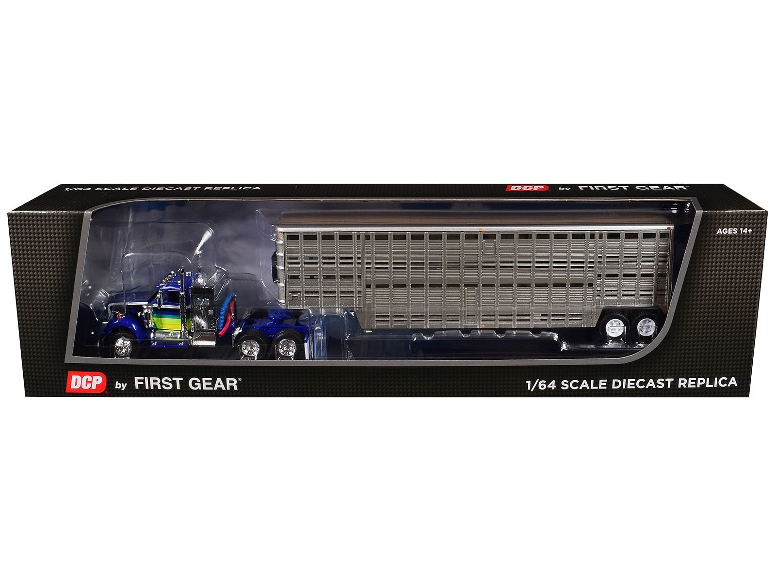 Imagine yourself cruising down a sun-baked highway, the wind whipping through your hair as you command this magnificent machine. You're behind the wheel of a legendary White Western Star 4900, its iconic flat top sleeper gleaming in the afternoon light. Beside it, a sturdy Wilson livestock trailer, painted in vibrant blue with bold white stripes, follows faithfully. This isn't just a truck and trailer; it's a timeless duo that embodies the spirit of American trucking heritage.