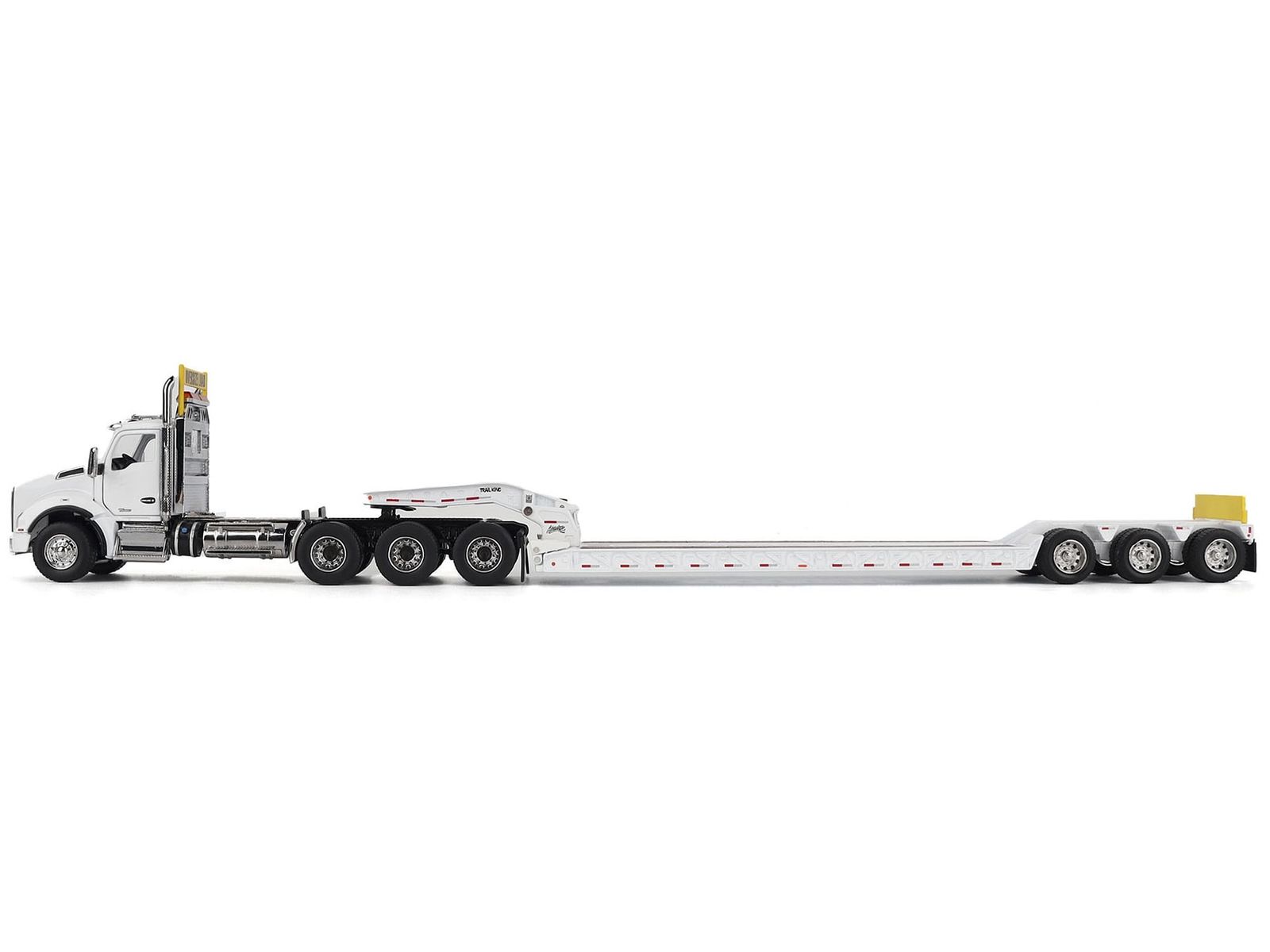 This Kenworth T880 SBFA Tridem Truck with Trail King HDG Lowboy Trailer is more than just a model; it's an investment in your passion. Whether you're a seasoned collector, a trucking enthusiast, or simply someone who appreciates the beauty of finely crafted miniatures, this piece will undoubtedly become a prized addition to your collection.