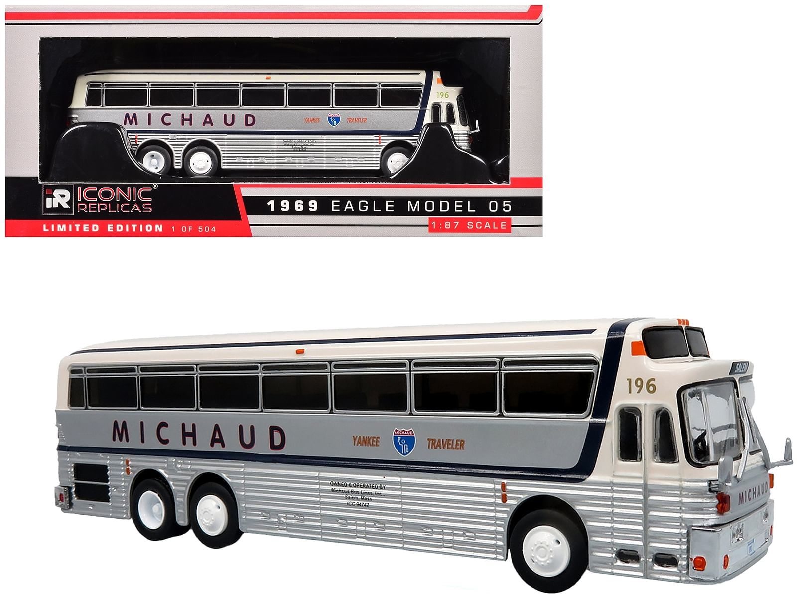 1969 Eagle Model 05 Coach Bus Michaud Bus Lines Yankee Traveler White and Silver