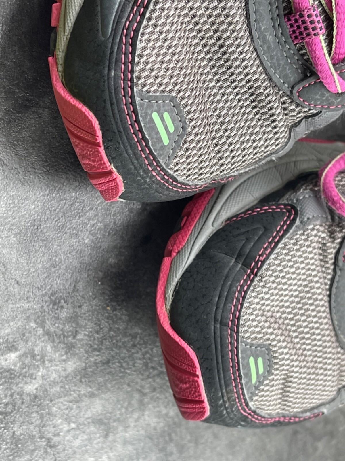 Note : Being a used item, there are signs of prior use on it like a few body abrasions, a little fading, staining, heel wear, some insole/inside body staining/wear and an area of gum on the bottom sole but overall, they are still in really great condition.