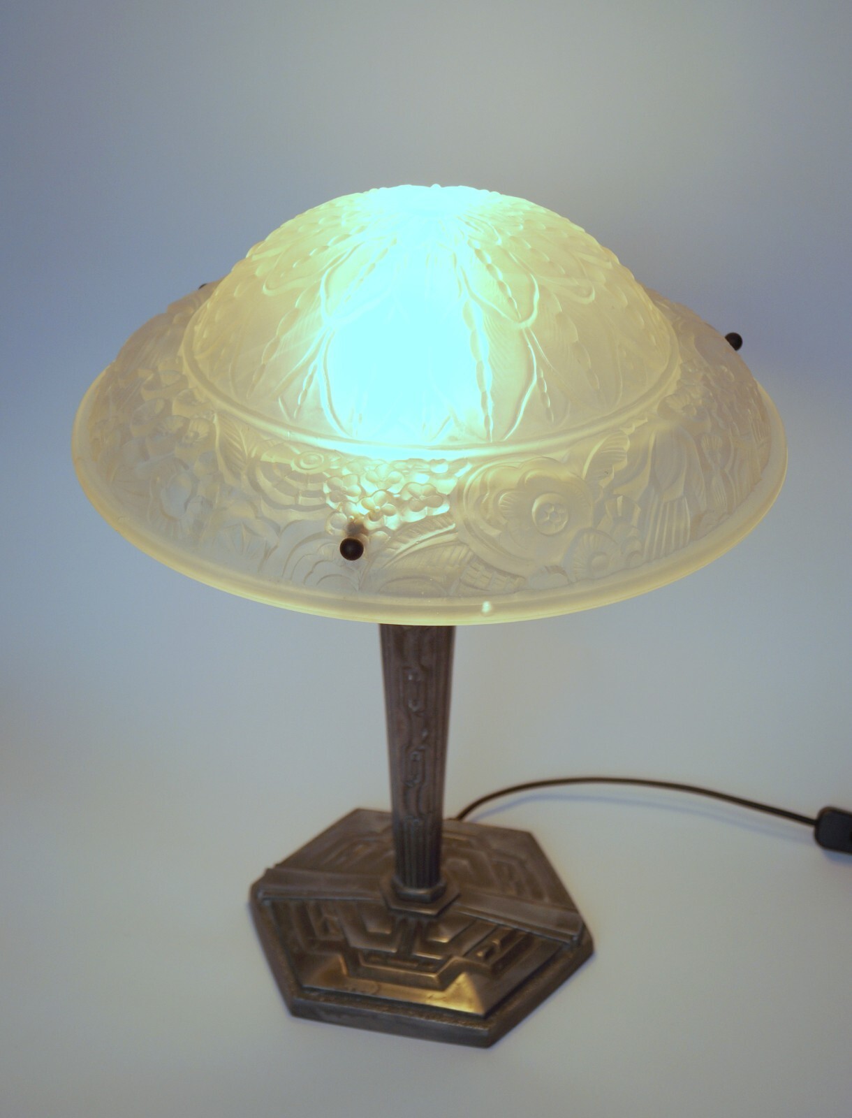 Original Art Deco cast glass shade with fantastic lighting effect.