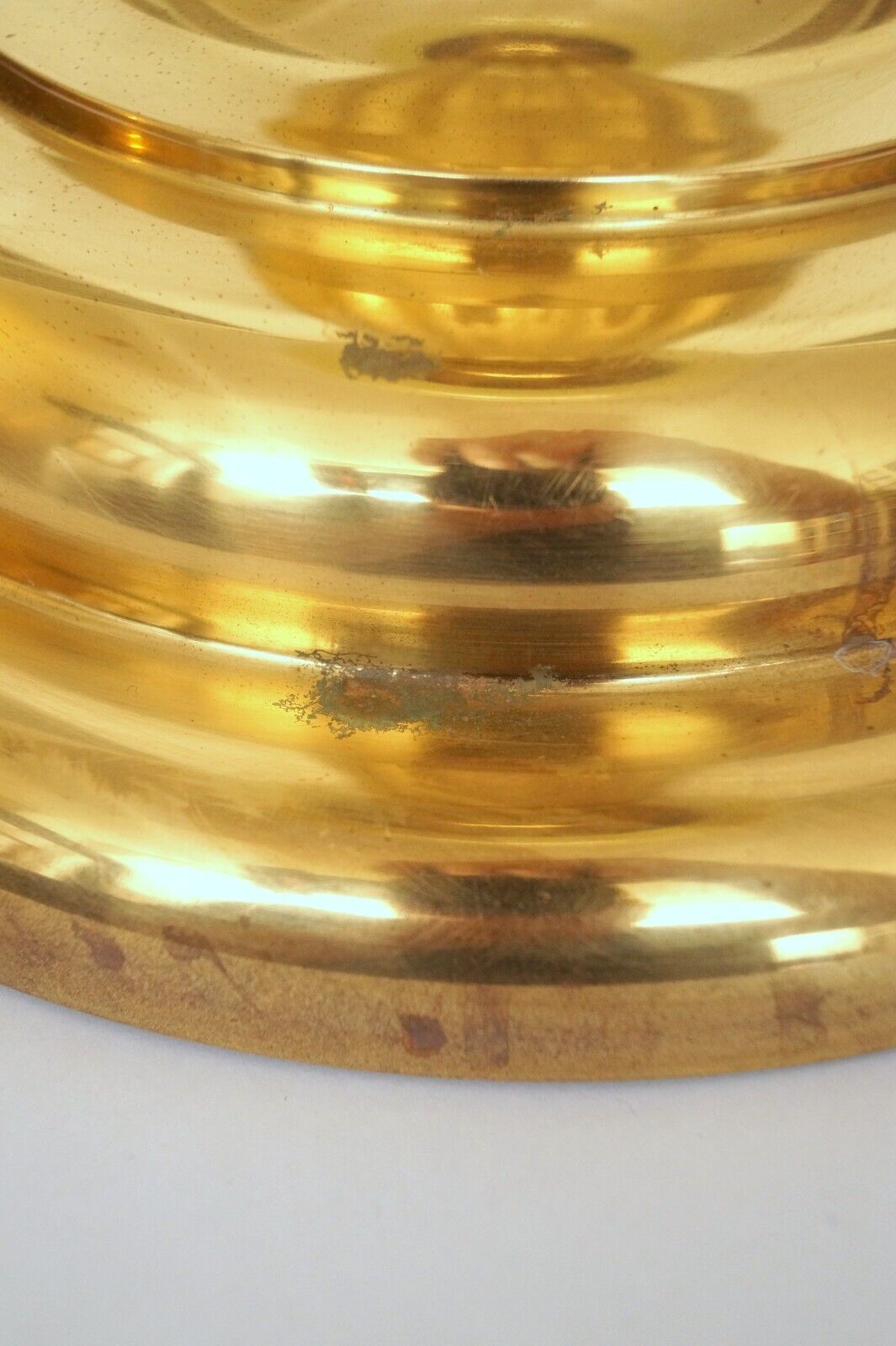 Elegant and very heavy brass gear, with visible patina and subtle Signs of age and use.