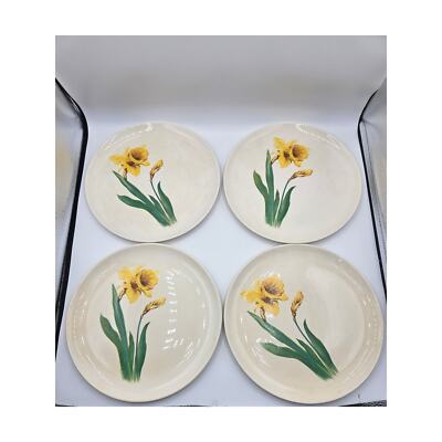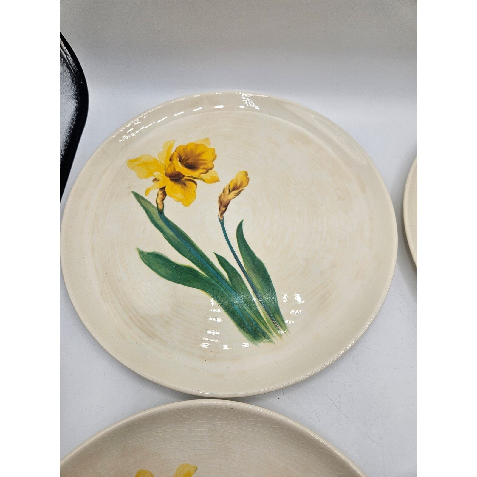 Jonquil by Universal Set of 4 Luncheon Plates White Body, Yellow Flower & Bud