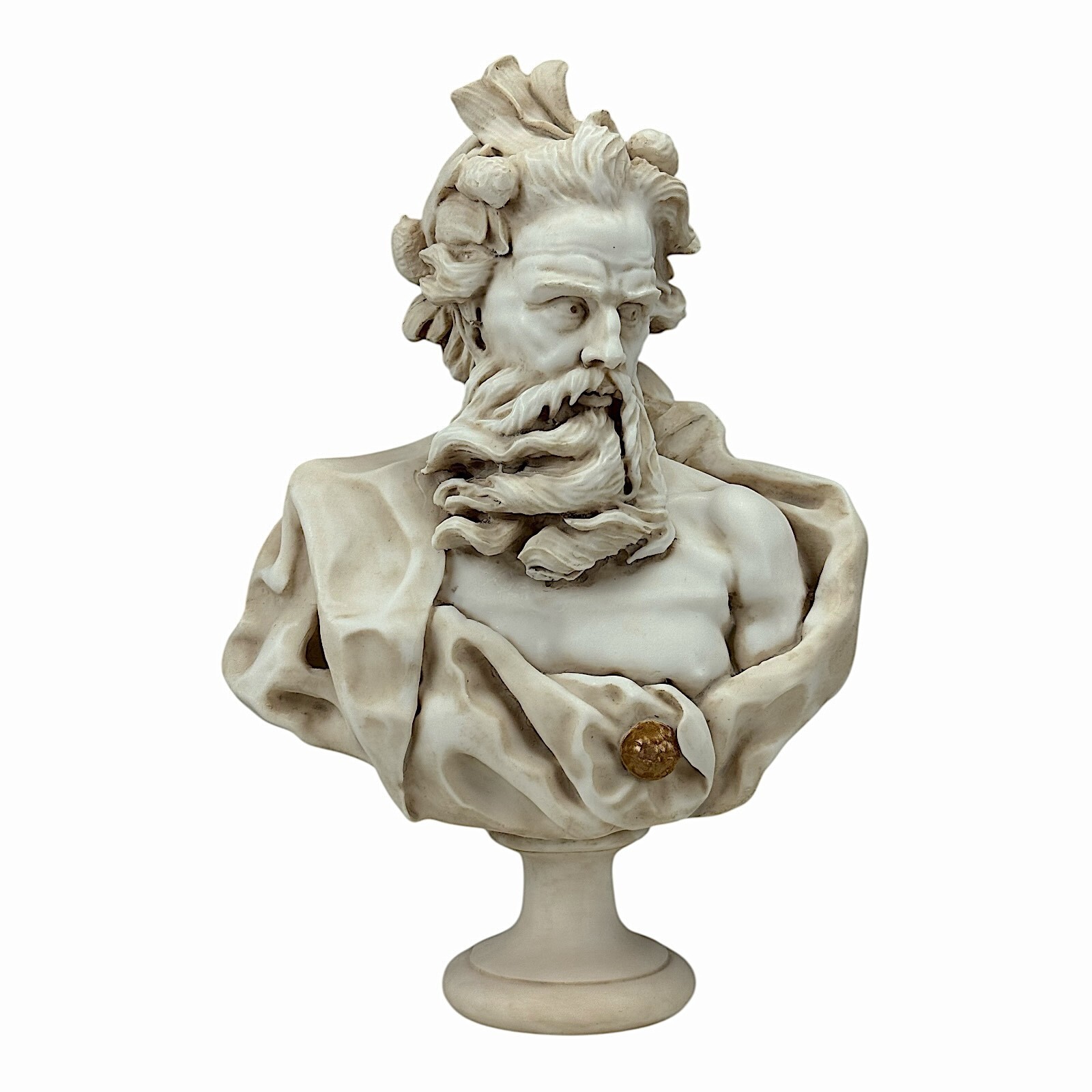 This elegant bust represents Neptune (Poseidon), the powerful Greek and Roman god of the sea. It is a smaller-scale reproduction of the famous bust by Lambert-Sigisbert Adam (1725?1727), currently housed in the Los Angeles County Museum of Art.