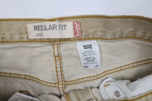 Vintage Y2K 2006 Levis 505 Mens 36x34 Distressed Regular Fit Denim Jeans Beige