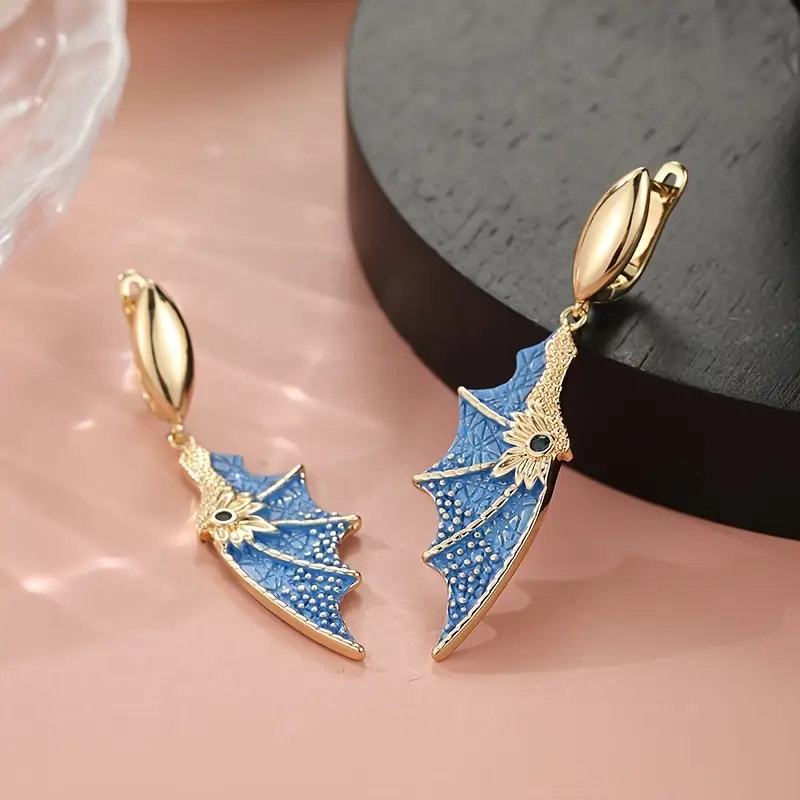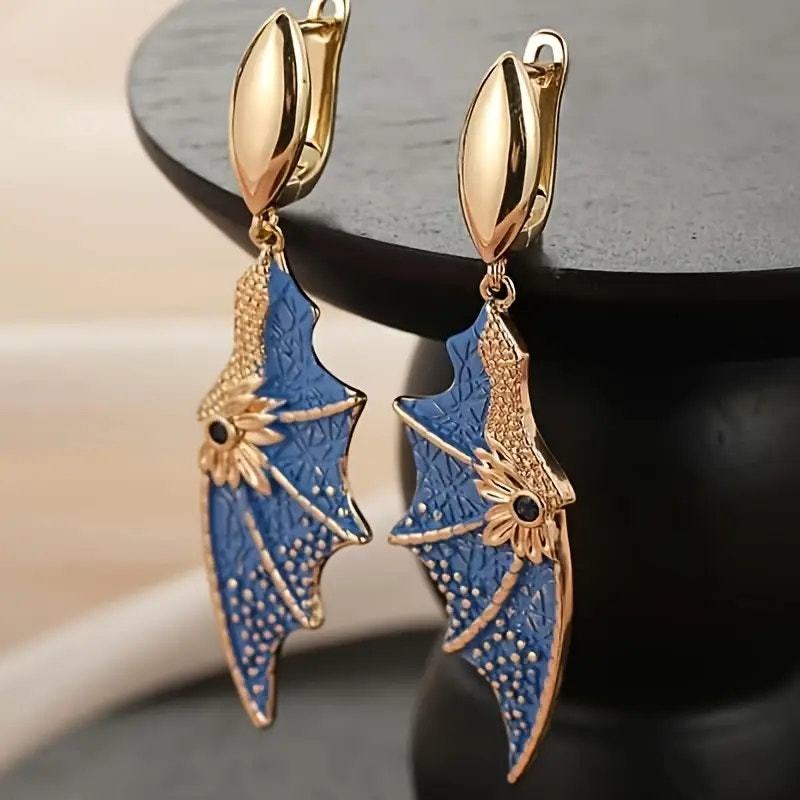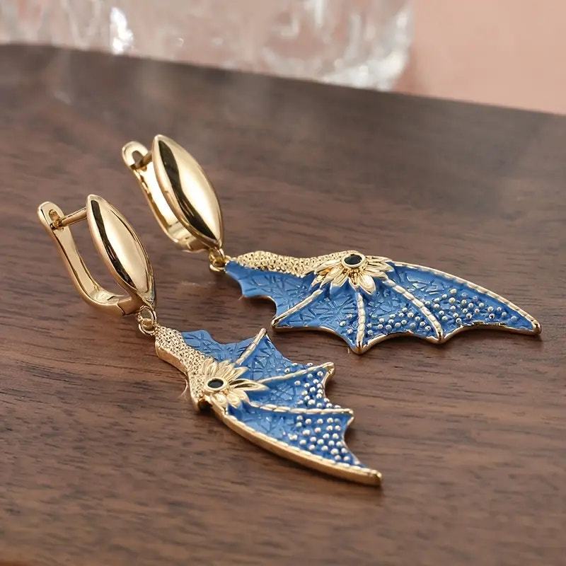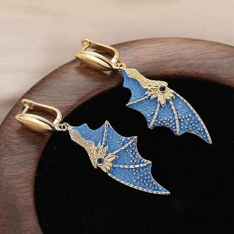 Blue & Gold Dainty Delicate Fantasy Dragon Wing Cosplay Earrings
