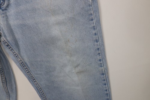 Blemishes front and back. Distressed and faded. Inseam hemmed. Tagged size 30 inseam but was hemmed to fit size 27. Check measurements. Tagged size 34x30. Actual size 34x27