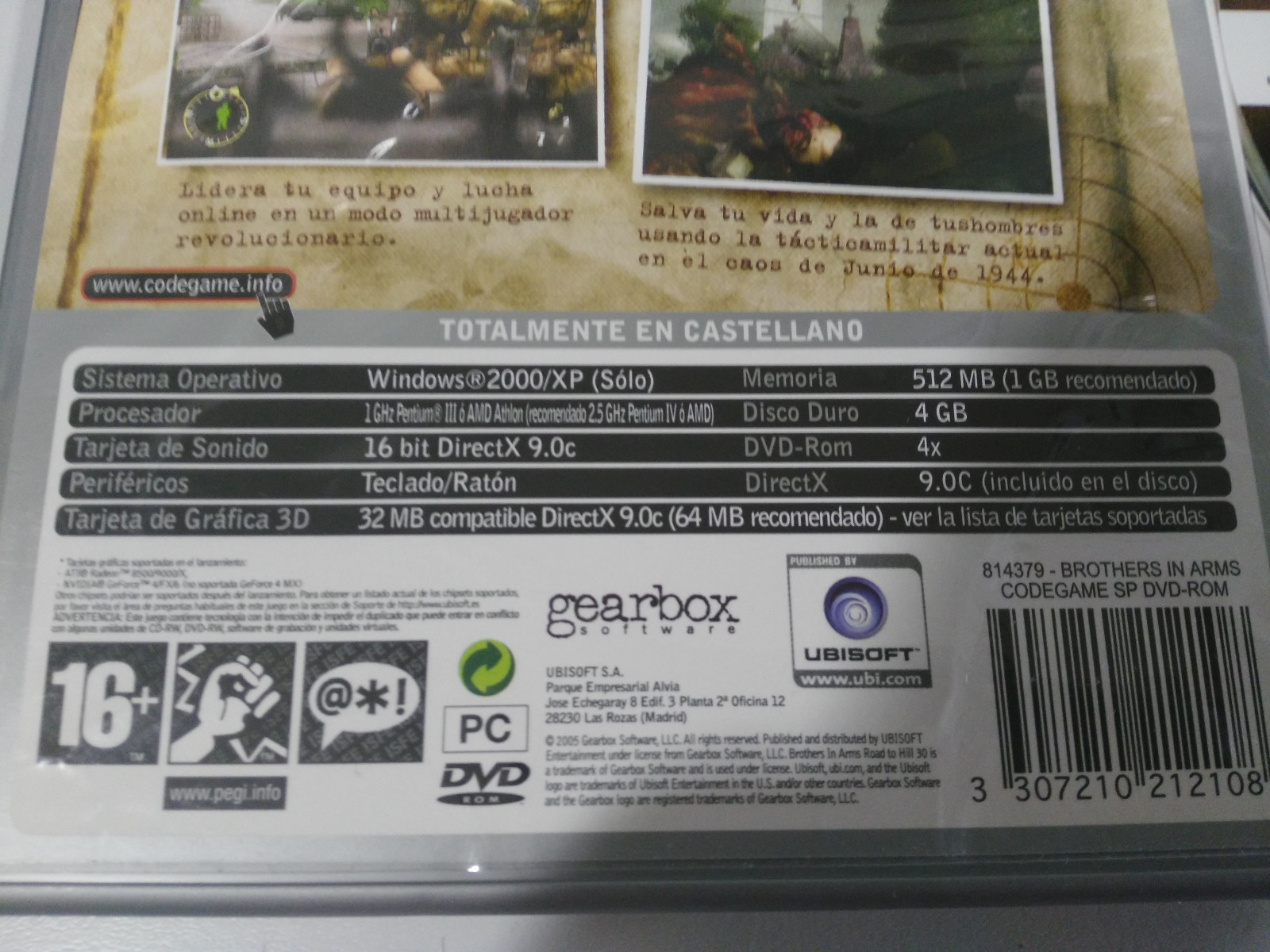 Brothers in Arms Road to Hill 30 Spanish PC JUEGO DVD-ROM UBISOFT Boîte de vitesses